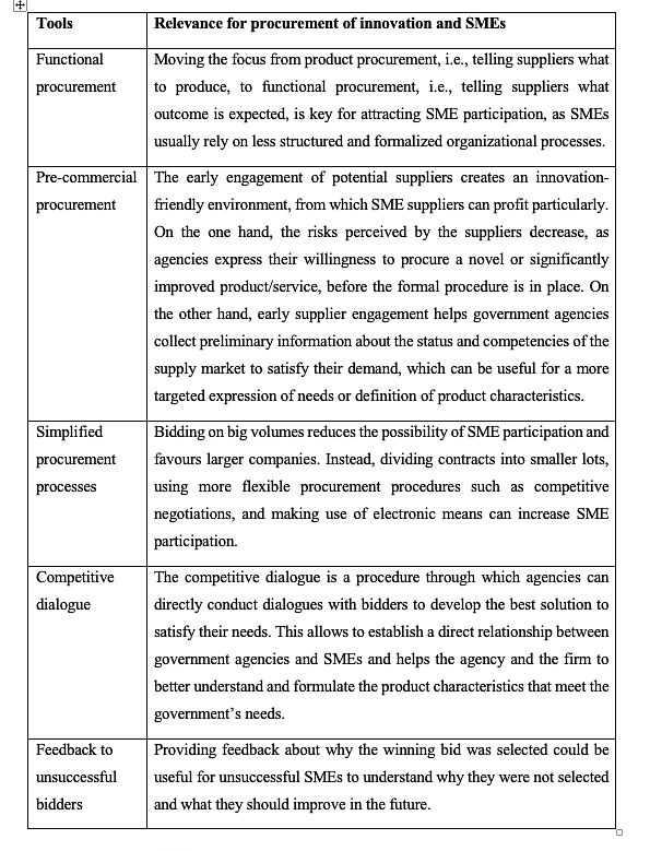 By adopting SME-friendly innovation procurement policies, governments can create a conducive environment for SMEs to thrive and innovate. These policies not only stimulate innovation within the public sector but also provide a foundation for SMEs to sustain themselves and contribute to economic recovery and growth during and beyond emergency situations.
