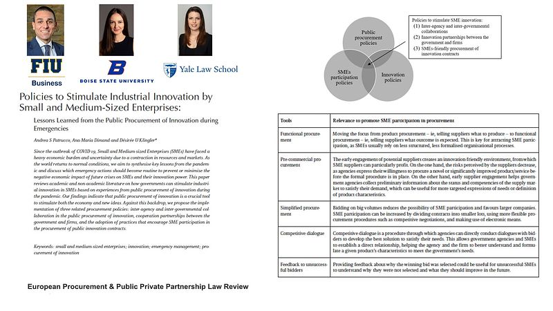 Small and medium-sized enterprises (SMEs) play a vital role in driving economic growth and innovation. However, during emergency situations like the COVID-19 pandemic, SMEs face significant challenges due to resource and market contractions. In a recent article titled "Policies to Stimulate Industrial Innovation by Small and Medium-sized Enterprises: Lessons Learned from the Public Procurement of Innovation during Emergencies," co-authored with Ana-Maria Dimand and Desirée Kingler, we highlight the importance of procurement policies in supporting SMEs during crises and fostering their innovation capabilities. I want to explore the key findings of the article and emphasize the significance of procurement of innovation policies for the resilience and growth of SMEs during emergency situations.